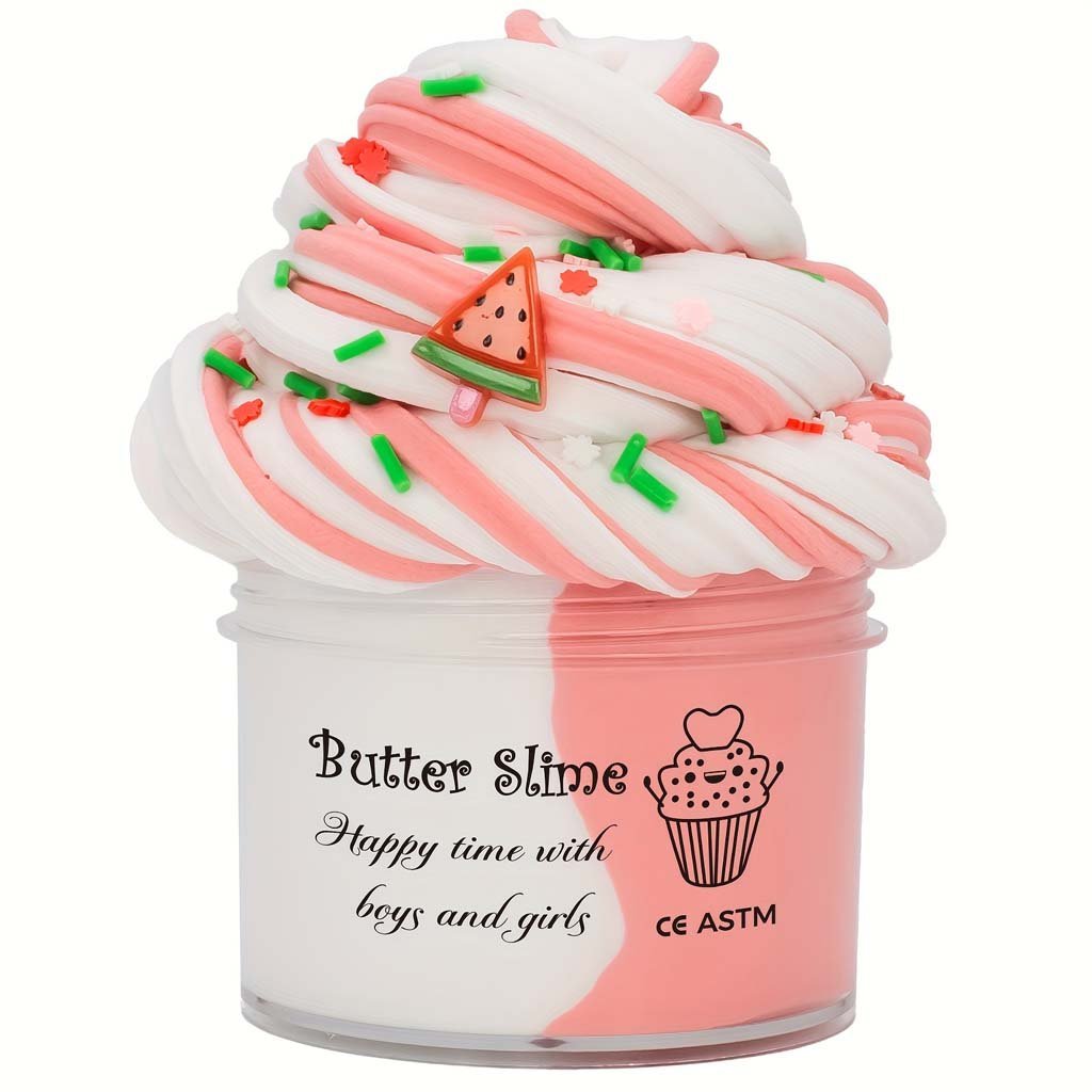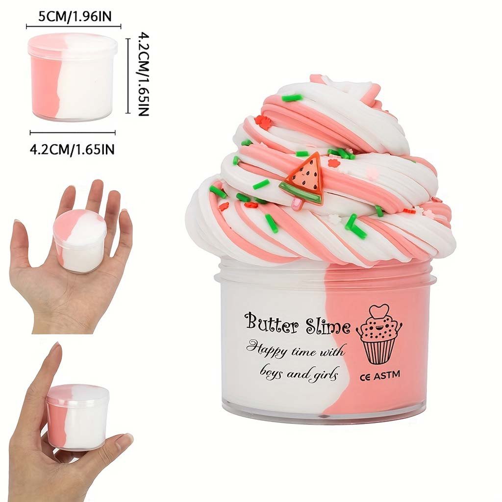 Get ready for a squishy, fluffy, and stress-relieving playtime with Butter Slime! Smooth and soft to the touch, this slime stretches, folds, and molds easily, making it fun for kids and relaxing for adults. Comes in a cute container with a swirl design and sprinkles for extra charm. Perfect for sensory play, fidgeting, and creativity!
