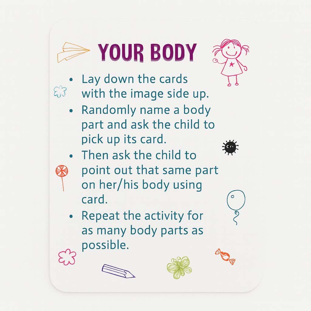 Learning Focus: Body part recognition, vocabulary building, early science learning