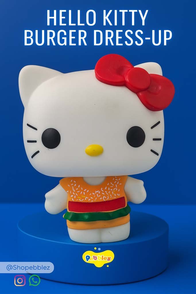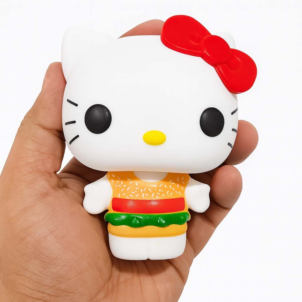 Bring playful vibes to your collection with this unique Hello Kitty toy figure! Styled like a delicious burger with sesame seed details, a red ketchup stripe, and green lettuce frills, this fun design is perfect for food-themed fans and Hello Kitty lovers alike.