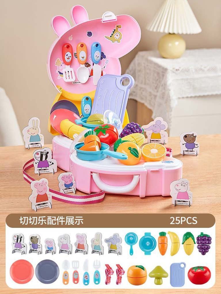 Cook up endless fun with this Peppa Pig-themed kitchen backpack! Packed with colorful pretend cooking tools, cutting food toys, and adorable Peppa Pig character pieces, this playset is perfect for imaginative play. The backpack design makes it easy to carry anywhere, turning playtime into a fun on-the-go kitchen adventure for little chefs.