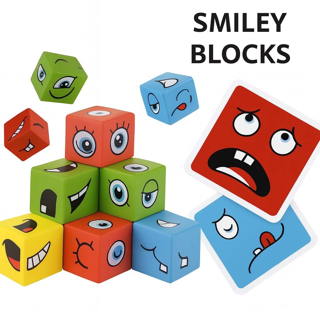 🧩 16 Wooden Face Cubes – Durable and safe blocks with vibrant emoji expressions for endless play.